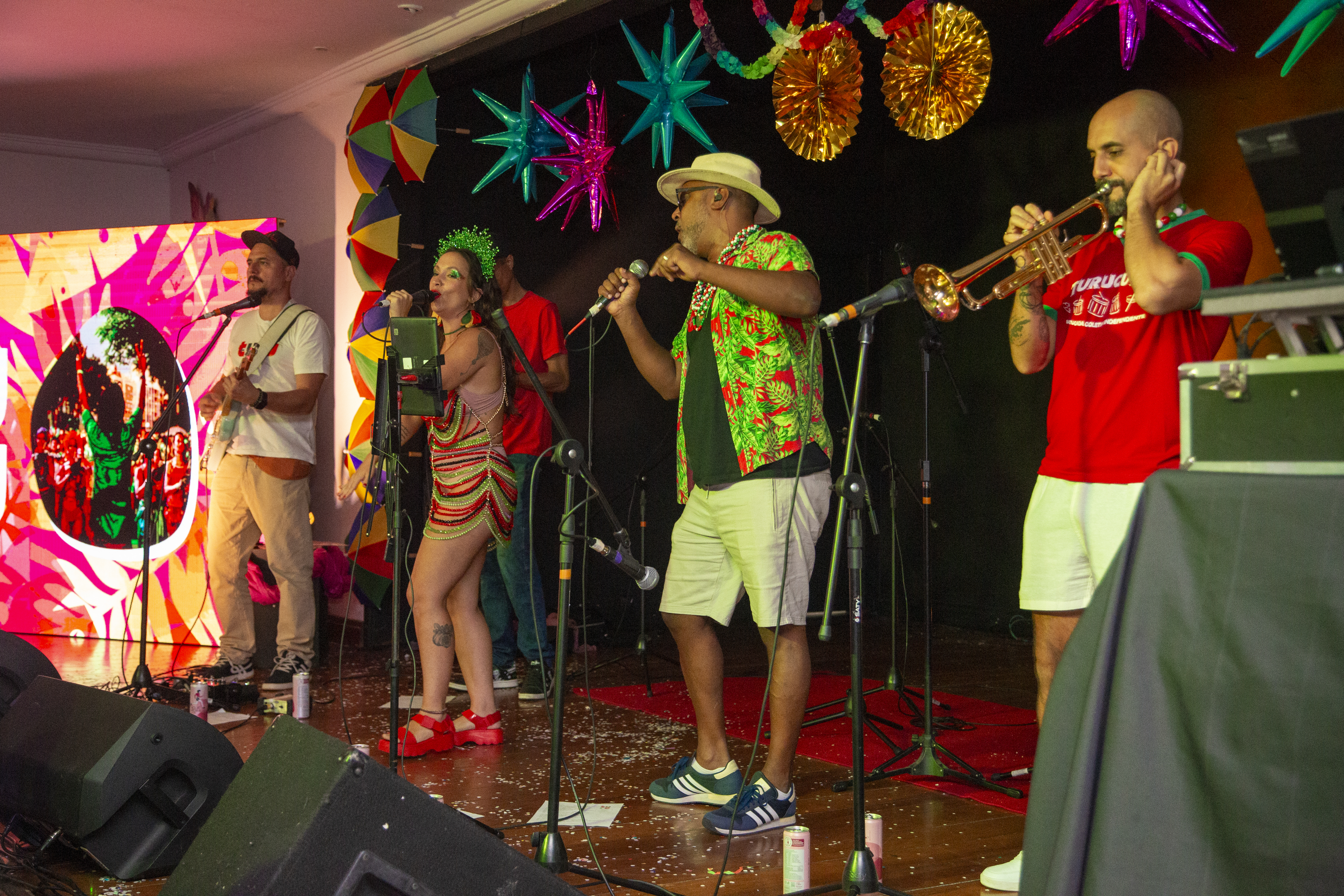 Com o Salão Ipanema já embalado pela energia contagiante, o Bloco Turucutá entrou em cena trazendo a força da percussão e aquele clima de Carnaval raiz. Entre sambas, marchinhas e ritmos indispensáveis na folia brasileira, o grupo colocou o público para cantar e dançar.