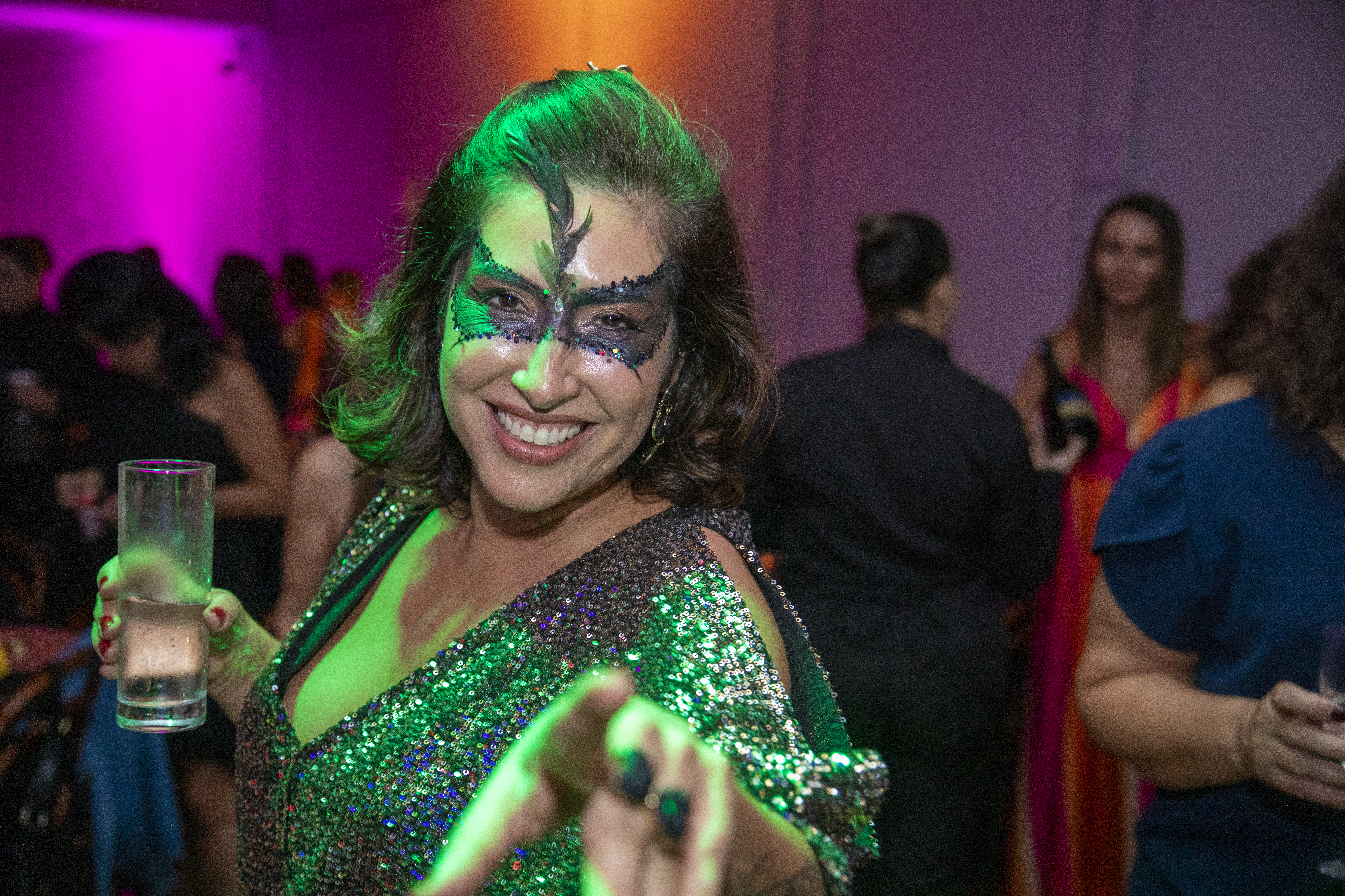 Logo na recepção do evento, máscaras criativas e autênticas revelavam personalidades. Impulsionados pela curiosidade, os olhares percorriam o Salão Ipanema, carregando aquele charme típico de quem sabe que está vivendo algo verdadeiramente especial.