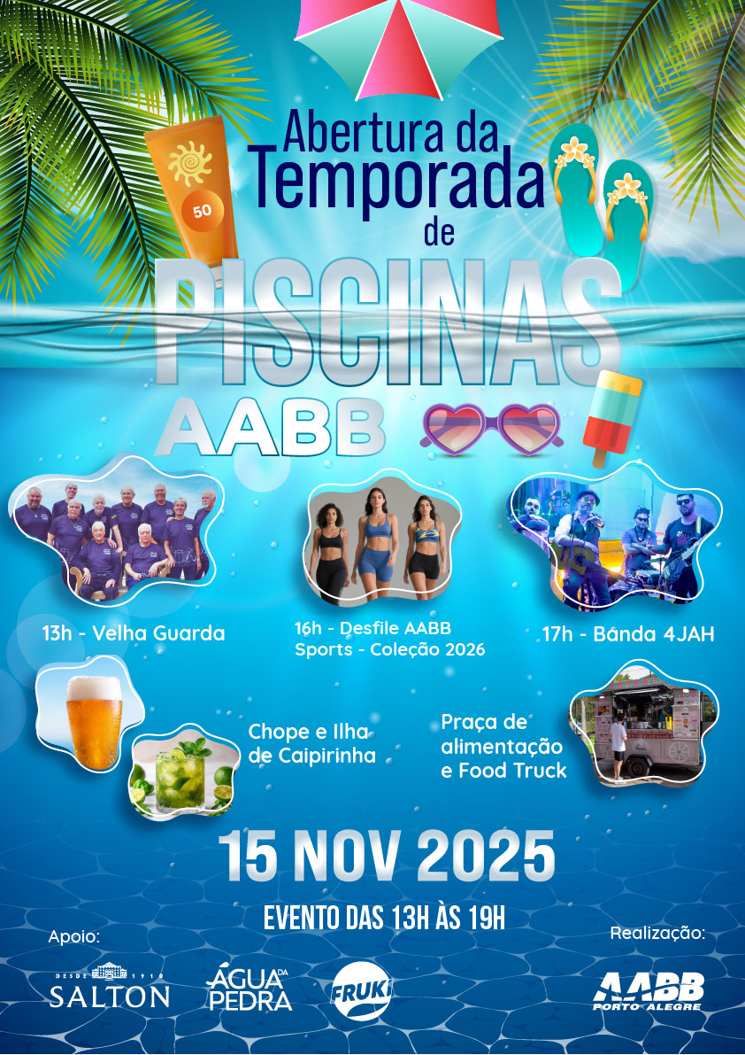 16h – Desfile AABB Sports – Coleção 2026: inspirações, tendências e aquele look perfeito para aproveitar o verão com estilo.