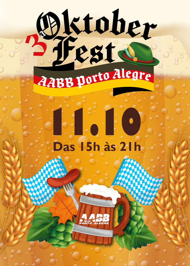 A 3ª Oktoberfest da AABB Porto Alegre vem aí para brindarmos, e muito, esse grandioso evento da cultura alemã. A festa acontecerá no dia 11 de outubro, das 15 às 21h, no pátio do clube.